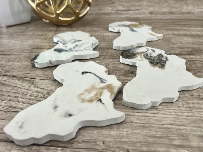 I asked to make this set custom in white instead of the light blue and the seller was more than happy to accommodate! They arrived in a very timely manor ro my friend and she absolutely loves her coasters. 10/10 would recommend.